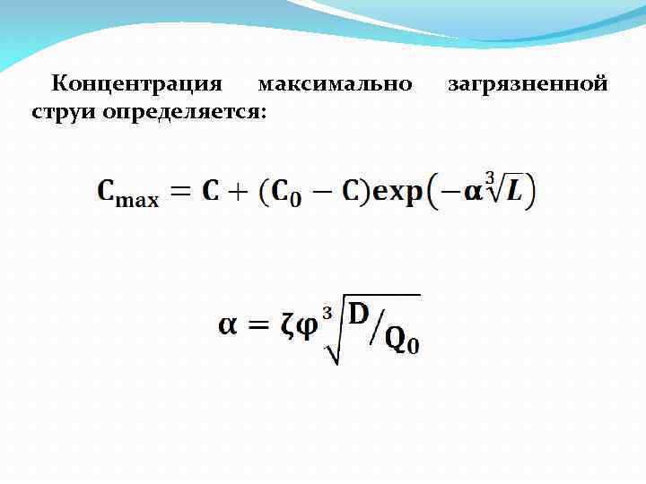 Интенсивность процесса разбавления может быть выражена и через отношение избыточных концентраций загрязнения в месте выпуска к концентрациям в рассматриваемом сечении: Для водотоков формула представлена в виде: