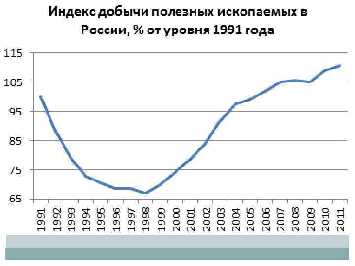 Роль горно-металлургической промышленности в экспорте России, млн. долл. Виды продукции Неметаллическое сырье Металлические руды Изделия из неметаллов Керамические изделия 2007 2008 2009 2010 743 2, 222 873 980 1, 592 2, 375 1, 178 2, 273 368 362 275 314 212 202 174 244 Драгоценные камни и металлы 6, 832 7, 164 5, 039 8, 623 Черные металлы 21, 119 28, 658 14, 720 19, 345 Изделия из черных металлов 2, 486 3, 086 3, 104 2, 095 Цветные и редкие металлы 23, 316 19, 744 14, 227 18, 864 Итого 56, 668 63, 813 39, 590 52, 738