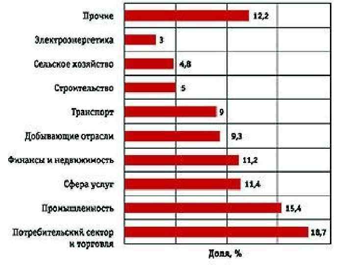 Народное хозяйство России представляет собой совокупность отраслей и сфер экономики. Оно включает отрасли материального производства и непроизводственные отрасли. Материальные отрасли производства: • промышленность; • сельское хозяйство; • транспорт; • строительство; • связь; • торговля; • общественное питание; • материально-техническое снабжение.