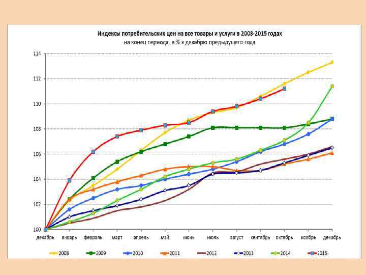 Индексы потребительских цен, в процентах К предыдущему месяцу июль 2015 г. Российская Федерация Австрия Бельгия Болгария Венгрия Германия Греция Испания Италия Соединенное Королевство (Великобритания) Франция Армения Беларусь Бразилия Казахстан Канада Киргизия США Турция Украина Швейцария август 2015 г. 100, 8 99, 5 98, 7 100, 2 100, 0 100, 3 98, 8 98, 5 98, 0 100, 4 99, 8 101, 3 100, 1 99, 4 100, 0 99, 8 99, 6 99, 9 сентябрь 2015 г. 100, 6 99, 8 99, 2 99, 4 99, 7 101, 2 100, 4 101, 6 99, 8 99, 5 97, 8 100, 2 100, 6 100, 1 99, 5 100, 0 99, 8 100, 2 100, 4 100, 1 100, 2 100, 3 100, 0 100, 3 99, 9 100, 3 99, 2 99, 4 99, 9 99, 6 100, 1 101, 3 100, 5 101, 0. . . 2) 101, 0 99, 8 100, 9 102, 3 100, 4 Сентябрь 2015 г. в % к декабрю 2014 г. 110, 4 101, 1 99, 1 101, 1 100, 1 101, 4 99, 7 100, 1 100, 0 100, 2 98, 0 109, 2 107, 6 102, 9. . . 2) 101, 1 101, 3 106, 2 141, 4 99, 1