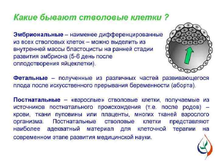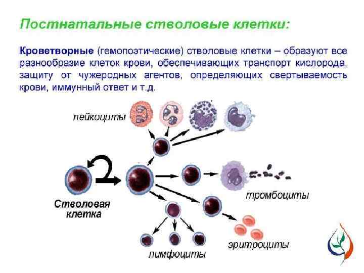 Стволовые клетки - клетки, входящие в состав постоянно обновляющихся тканей и способные развиваться в различных направлениях, в пределах тканевой дифференцировки. Так, в процессе гемопоэза у человека ежечасно продуцируется, и, следовательно, разрушается 1 миллиард эритроцитов и 100 миллионов лейкоцитов. Такое количество специализированных клеток, естественно, может быть обеспечено только за счет пролиферации некоторого числа самоподдерживающихся клеток, которые Стволовые клетки стали рассматривать как стволовые. (электр. микроскоп) Поведение и характерные черты стволовых клеток во многом зависят от физиологических особенностей тех тканей, в которых они находятся. Самое существенное свойстволовых клеток - они могут самоподдерживаться в течение длительного времени и при этом производить дифференцированные клетки, которые выполняют в организме специфические функции. Стволовые клетки эмбриона