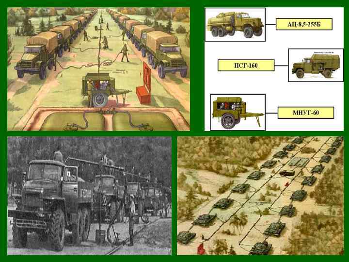 Батальонный заправочный пункт предназначен для приема, хранения запасов горючего, доставки его в подразделения и для заправки машин авто мобильным отделением вмо (воб). Заправка боевых машин батальона осуществляется непосредственно в боевых порядках в перерывах между боями, ночью или в условиях ограниченной видимости. Развертывание ПЗП-10 А (вариант)