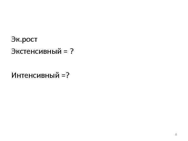 Эк. рост Экстенсивный = ? Интенсивный =? 8