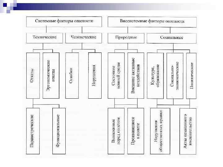 Оценка и устранение опасности Выявление опасности (факторов риска) осуществляется на основе установления допущенных отклонений в функционировании всех элементов АТС и определении их причинной связи с возникновением особых ситуаций в полете. В тех случаях, когда источником опасности является документ, регламентирующий работу элементов АТС, выявление опасности строится по обратной схеме с персональной идентификацией особой ситуации в полете и последующим ее причинным анализом.