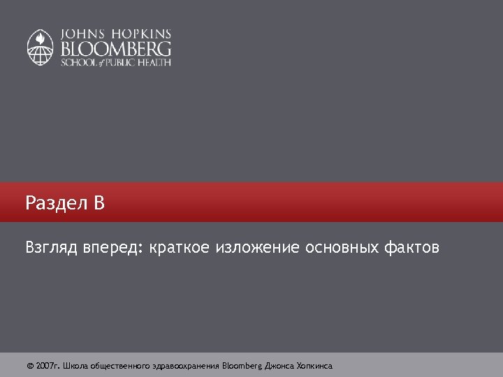 Раздел B Взгляд вперед: краткое изложение основных фактов 2007 г. Школа общественного здравоохранения Bloomberg Джонса Хопкинса