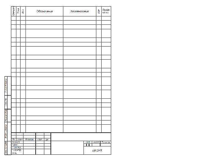 Допускается совмещение спецификации со сборочным чертежом при условии их размещения на листе формата А 4(ГОСТ 2. 301). При этом ее располагают над основной надписью и заполняют в том же порядке и по той же форме, что и спецификацию, выполненную на отдельных листах. Для изделий вспомогательного производства и единичного производства разового изготовления допускается совмещение спцификации со сборочным чертежом на листах любого формата, установленного ГОСТ 2. 301. Правила выполнения и обращения таких совмещенных документов устанавливают в отраслевых стандартах. Совмещенному документу присваивают обозначение основного конструкторского документа. Основную надпись выпол няютпо ГОСТ 2. 104 (форма 1). Для изделии, разрабатываемых по заказам Министерства оборо ны совмещение спецификации со сборочным чертежом на любых форматах, кроме А 4, не допускается. Примечание Допущение о совмещении спецификации со сборочным чер тежом (кроме выполненных на формате А 4) принимается разработчиком по согласо ванию с заказчиком (при его наличии).