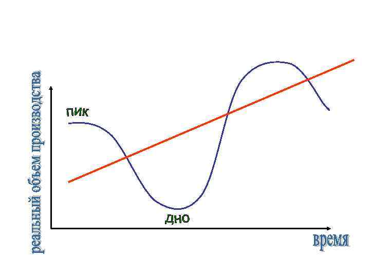 • ПИК – точка окончания подъема и поворота к сокращению • ДНО – (подошва) предел сокращения объема реального национального продукта, после которого обычно наступает поворот к подъему