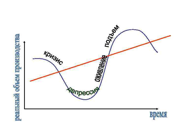 Депрессия • Продолжительный период спада производства реального национального продукта, прекращение падения производства • Приостановление падения цен • Падение ссудного процента • Снижение издержек производства использования прогрессивной техники • Оздоровление экономики • Создаются предпосылки к оживлению на основе