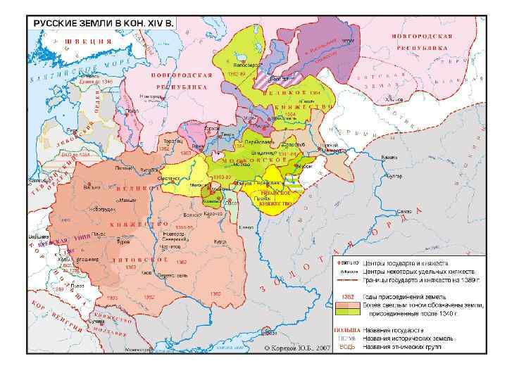 Тема 2. 4. Объединительные процессы в русских землях (XIV - середина XV вв. ). Возвышение Москвы. • С конца ХIII века начинается возвышение Московского княжества, которое превратилась в политический и экономический центр Руси. Усиление Московского княжества было обусловлено следующими причинами: Ø оно было удалено от южных кочевников и защищено природным ландшафтом от врагов с северо-запада. Ø оно было расположено в центре пересечения сухопутных и речных торговых путей. Ø мудрая политика московских князей способствовало политическому и экономическому развитию княжества. • В ХIV-ХV вв. Москва возглавила борьбу за государственное объединение Руси. • Правление Ивана Калиты (1328 -1340 гг. ) имело следующие особенности: Ø происходит подчинение соседних удельных княжеств к Москве Ø Москва начинает обогащаться за счет сбора дани для Золотой Орды. Ø в 1326 году в Москву резиденции митрополита – главы русской церкви, что превратило Московское княжество в духовный центр русских земель. • Характерной чертой социально-экономического развития русских земель в XIV–XV вв. был интенсивный рост феодального землевладения