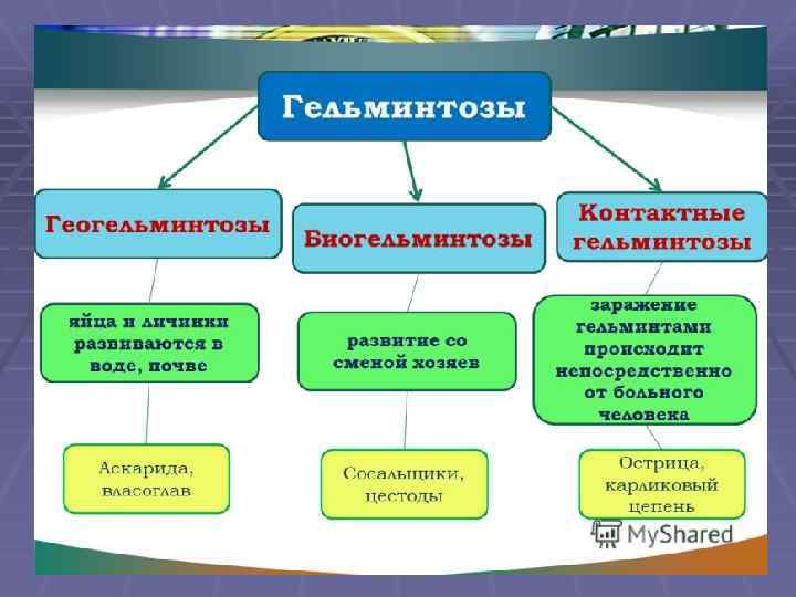 Характеристика Класса Собственно круглые черви (Nematoda) § Особенности жизненного цикла. § По особенностям жизненного цикла нематоды делятся на две группы: § геогельминты (развитие яиц и личинки происходит во внешней среде без промежуточного хозяина) § биогельминты (личинка развивается в теле промежуточного хозяина).