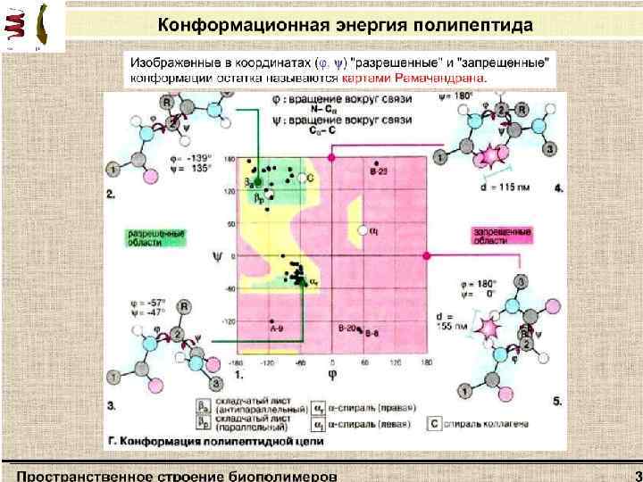 Пространственная конфигурация полипептидной цепи Таким образом, пространственная конфигурация полипептидной цепи будет зависеть от кооперативного взаимодействия φ и ψ углов у альфа атома углерода.