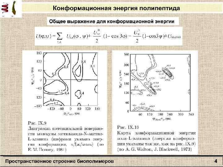 Общее строение полипептидной цепи Общее выражение для конформационной энергии