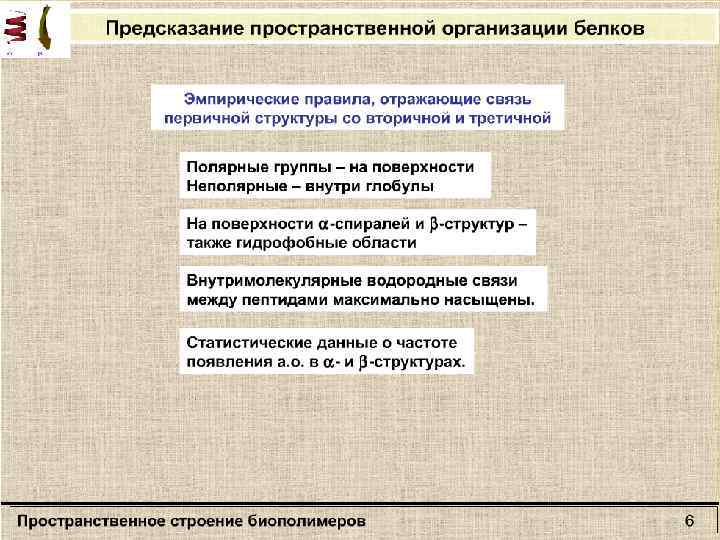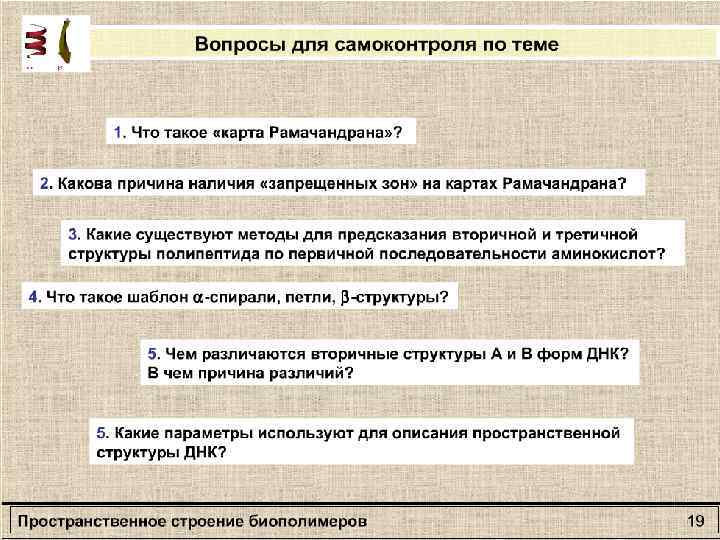 Раздел: Молекулярная биофизика Тема: Пространственная организация биополимеров