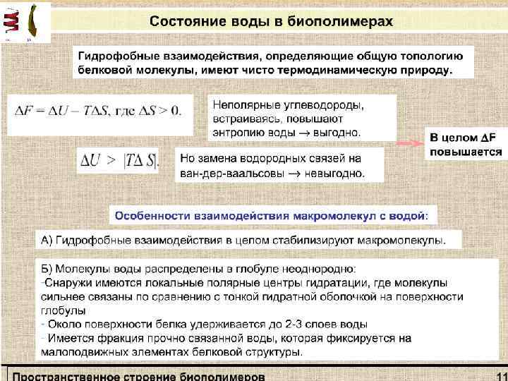 Раздел: Молекулярная биофизика Тема: Взаимодействия в макромолекулах