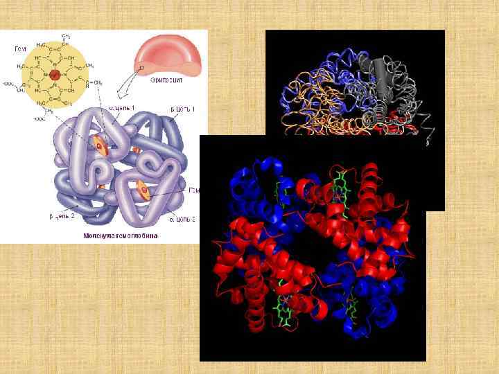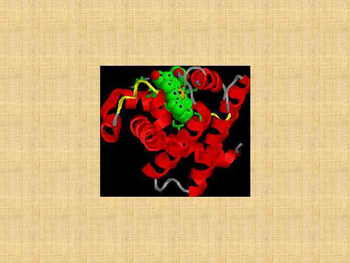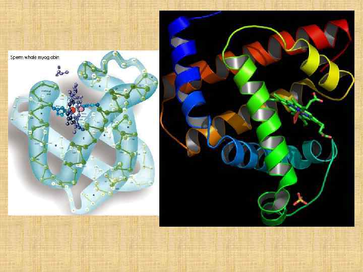 Пространственная структура миоглобина (кашалота) в проекции ху Миоглобин (переносчик кислорода в мышцах) содержит один гем и одну полипептидную цепь, включающую 153 остатка, которые распределены в основном по 8 а-спиральным участкам (А — Н). Гем, в центре которого расположен атом Fe, находится между спиралями Е и F.
