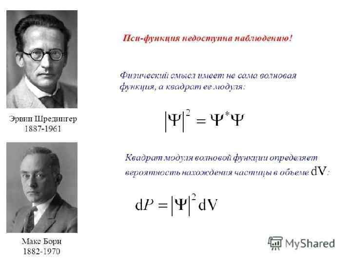 Статистический характер квантового описания природы Из-за принципа неопределенностей, описание объектов квантового микромира носит иной характер, нежели привычное описание объектов ньютоновского макромира. Вместо пространственных координат и скорости, которыми привыкли описывать механическое движение, в квантовой механике объекты описываются, так называемой, волновой функцией. Гребень «волны» соответствует максимальной вероятности нахождения частицы в пространстве в момент измерения. Движение такой волны описывается уравнением Шрёдингера, которое и говорит нам, как изменяется со временем состояние квантовой системы.