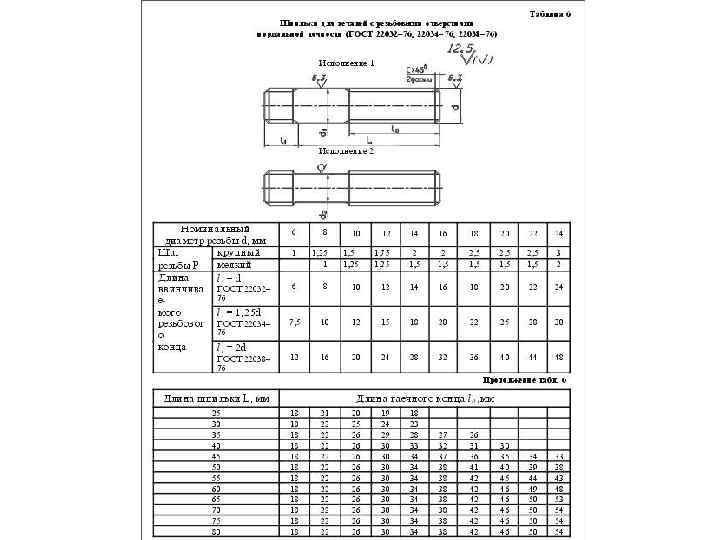Условное обозначение шпильки диаметром резьбы d = 16 мм, с крупным шагом резьбы, с полем допуска 6 g, длиной l = 90 мм, класса прочности 5. 8, без покрытия: Шпилька M 16 -6 gх90. 58 ГОСТ 22 О 32 – 76