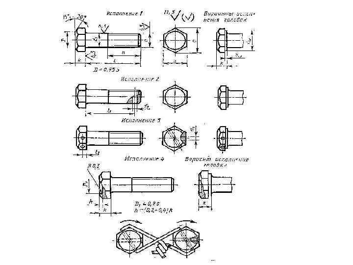 Крепежные детали рядового назначения изготавливают чаще всего из Cтали 45, ответственного назначения (шатунные болты, силовые шпильки и т. д. ) - из хромистых сталей типа 40 Х, хромансиля типа 30 ХГС, жаропрочных сталей типа 30 ХМ, 50 ХФА, 25 Х 12 М 1 Ф, из коррозионностойких сталей типа 30 Х 13, 40 Х 13. Болт - цилиндрический стержень с головкой на одном конце и резьбой для гайки на другом