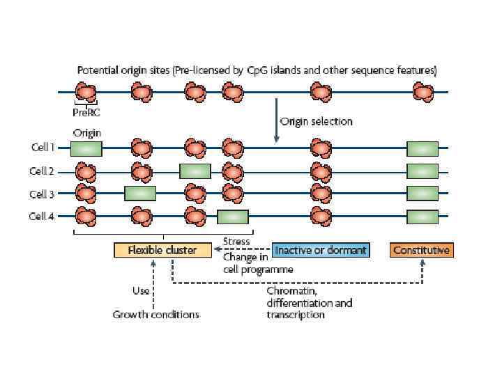 (до G 1/S чекпоинта) 1 2 (G 1/S чекпоинт и далее до G 1 a) Фосфорилирование компонентов ORC 1. Препятствует формированию новых pre. RC 2. Активирует-запускает ориджин