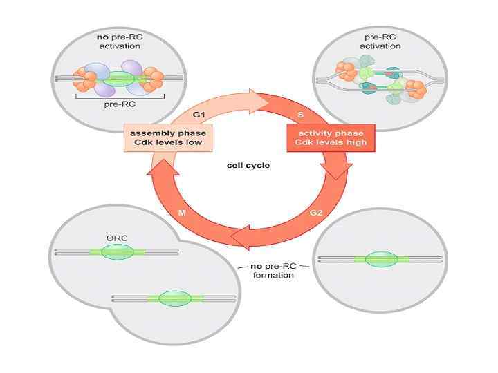 Активация pre. RC комплекса происходит путем фосфорилирования компонентов циклин-зависимыми киназами в G 1/S контрольной точке (checkpoint)