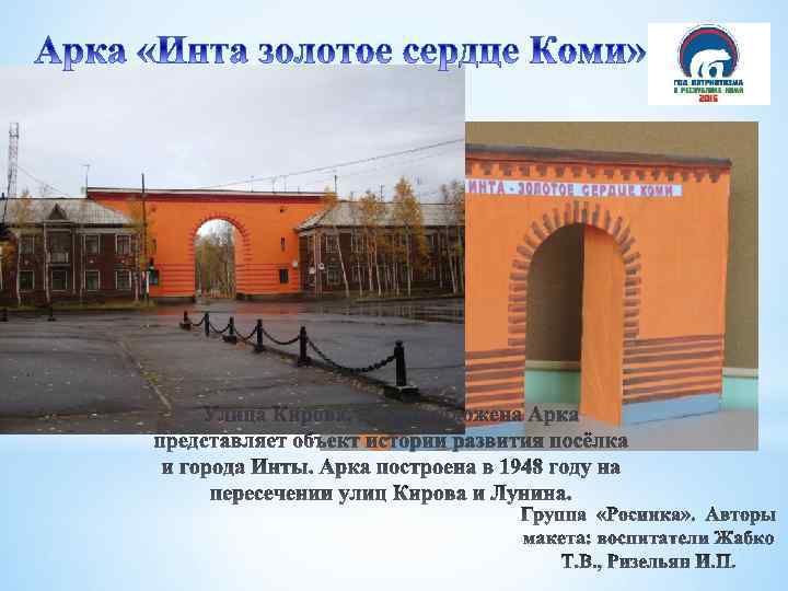 Здание водонапорной башни расположено в исторической части города Инта (западная часть города). Россия, Республика Коми, город Инта, ул. Чайковского, 3 Вторая младшая группа «Бабочка» Воспитатели Быликина Е. А. , Смирнова А. В.