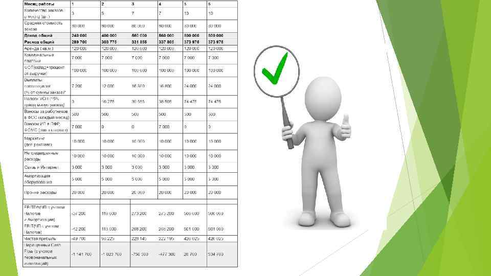 Финансовый план Текущие расходы *Амортизация начисляется на офисную мебель и собственное оборудование организации. Срок амортизации 3 года, метод начисления — линейный. ** Запуск производства осуществляется после заказа и внесения предоплаты от клиента. Однако закупка материалов может осуществляться по полной стоимости и требовать дополнительных вложений. ***Расходы на бензин во время выездов на объект, расходы на доставку транспортной компании, и т. д.