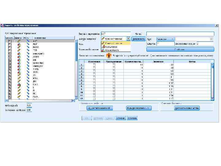 Поля и форматы данных: – Поля бинарных данных: в некоторых программах есть формат ячеек, позволяющий хранить только данные вида «да/нет» (также «вкл/выкл» , «истина/ложь» и др. ). – Поля с выпадающим списком: некоторые программы имеют формат, позволяющий вносить в поля базы данных только значения, имеющиеся в выпадающем списке (открывается при помещении курсора в соответствующую ячейку), например, коды исследуемых групп, степени тяжести заболевания и т. п.