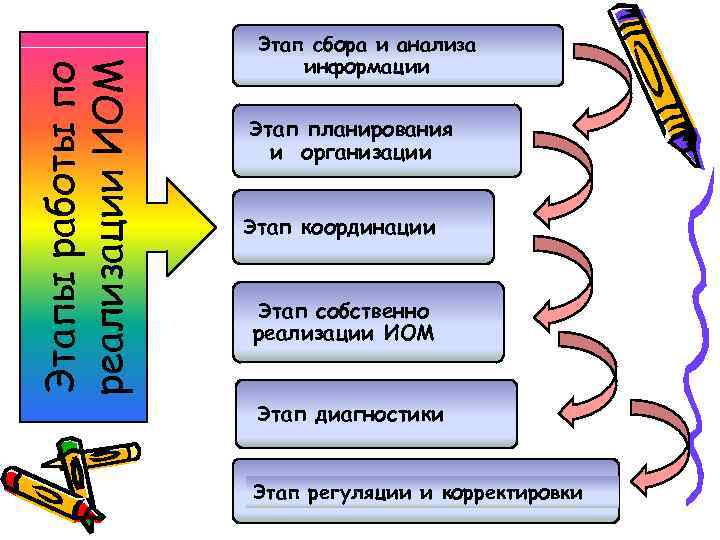 Этап сбора и анализа информации реализации ИОМ Этапы работы по Этап планирования и организации Этап координации Этап собственно реализации ИОМ Этап диагностики Этап регуляции и корректировки