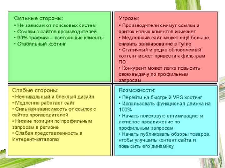 2. Где мы есть сейчас? Нужно понимать точку отсчета. Идеальный метод SWOT. При маленьких рекламных компаниях – цифровые данные, экспертная оценка