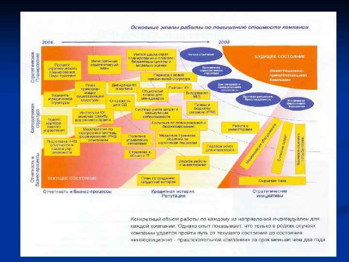 Шестой этап - январь: • Скорректировать стратегические интеграционные маркетинговые планы и Финансовую Стратегическую Модель в соответствие с решениями Совета управляющих директоров. • Свести Финансовую Стратегическую Модель с финансовой моделью бюджета 2008. • Подготовить и провести презентацию откорректированной версии стратегии 2008 -2012. • Утвердить стратегию 2008 -2012 Советом управляющих директоров и Советом директоров Компании. • Сделать декомпозицию стратегии на цели и задачи по бизнес-направлениям, регионам, функционалам.