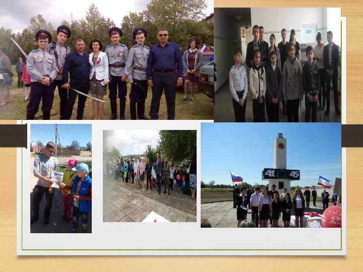 • Методы и формы организации деятельности - Разъяснение понятия патриотического и гражданского долга на примерах героических подвигов. - Использование краеведческого материала в ходе уроков для формирования уважения и гордости за свой народ. -Вооружение учащихся основами знаний о родном крае. - Организация краеведческой работы. Организация поисковой работы. - Проведение патриотических уроков на базе школьного музея. - Приглашение воинов запаса, выпускников школы, для участия в Уроке Мужества «Мы верим в тебя, Солдат !» с целью формирования у молодежи готовности к защите Отечества и службе в Российской Армии. • Участие в акциях: «Бессмертный полк» , «Дерево Победы» , «Памятник – от слова память» , «Георгиевская ленточка • Проведение митингов и Вахт памяти •