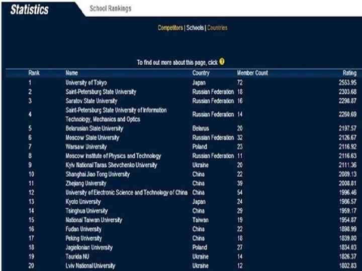БГУ и IT технологии • Белорусский государственный университет согласно рейтингу онлайнового проект-организатора соревнований по программированию Top. Coder (США) по итогам 2012 года в номинации Algorithm (алгоритмическое программирование) вошел в пятерку сильнейших вузов мира, заняв 5 место. Для сравнения отметим, что пять лет назад Беларусь стояла на 12 месте, а БГУ – на 17.