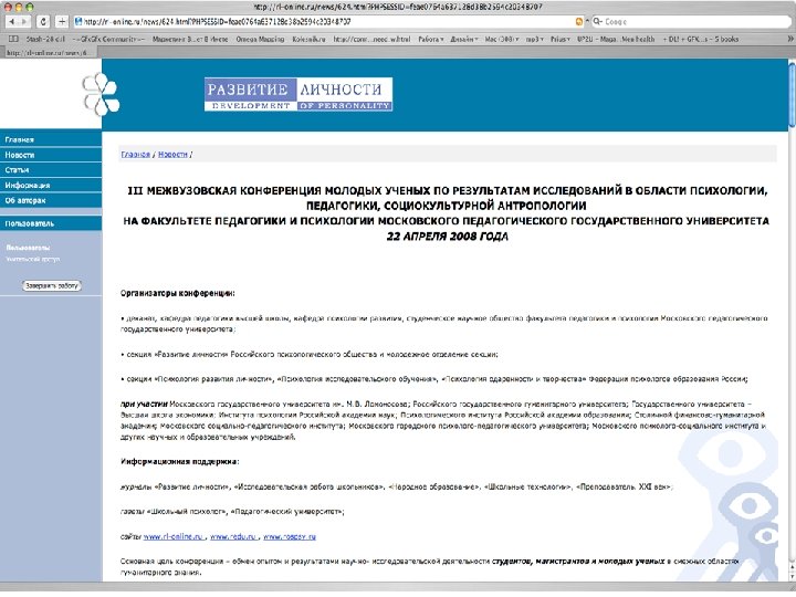 К сведению авторов • • • Журнал «Развитие личности» публикует оригинальные теоретические работы и исследования, практические разработки, архивные материалы и переводы по проблемам развития, воспитания и бытия личности в различных социальных, культурных и этнических условиях. В редакцию принимаются материалы объемом до 1 п. л. , представленные по электронной почте ao@redu. ru. Библиографические ссылки при цитировании приводятся в конце статьи по порядку упоминания в тексте. Указываются автор, название, место и год издания, страница. В тексте порядковый номер ссылки указывается в квадратных скобках после цитаты. Упоминание всех персоналий в тексте статьи обязательно с инициалами. Текст сопровождается вынесенными на левые поля основными идеями и тезаурусом, поясняющим по ходу содержание статьи. В рукописи маргиналии оформляются курсивом между абзацами основного текста статьи. К статье должны прилагаться следующие сведения об авторе: ФИО (полностью); ученая степень и звание; место работы и специальность; специалистом в каких областях является; область научных интересов; автор скольких публикаций и по каким проблемам, с указанием монографий (название, место и год издания); контактный телефон и адрес эл. почты. Редакция журнала «Развитие личности» 127051, г. Москва, М. Сухаревский пер. , д. 6. Тел. : (495) 608 -59 -74. E-mail: ao@redu. ru www. rl-online. ru