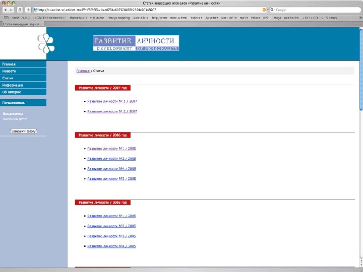Журнал основан в 1993 году Выходит с 1997 года Главный редактор: Мухина Валерия Сергеевна – действительный член РАО и РАЕН, доктор психологических наук, профессор, заведующая кафедрой психологии развития МПГУ Заместители главного редактор: Обухов Алексей Сергеевич – кандидат психологических наук, доцент кафедры психологии развития МПГУ Хвостов Андрей Анатольевич – доктор психологических наук, ведущий научный сотрудник Психологического института РАО Периодичность – 4 раза в год. Журнал включен в перечень ВАК. Адрес редакции: 127051, г. Москва, М. Сухаревский переулок, д. 6. Телефон: (495) 608 -59 -74 E-mail: ao@redu. ru Подписные индексы по каталогу «Роспечать» 47260 (на полугодие); 80515 (на год)