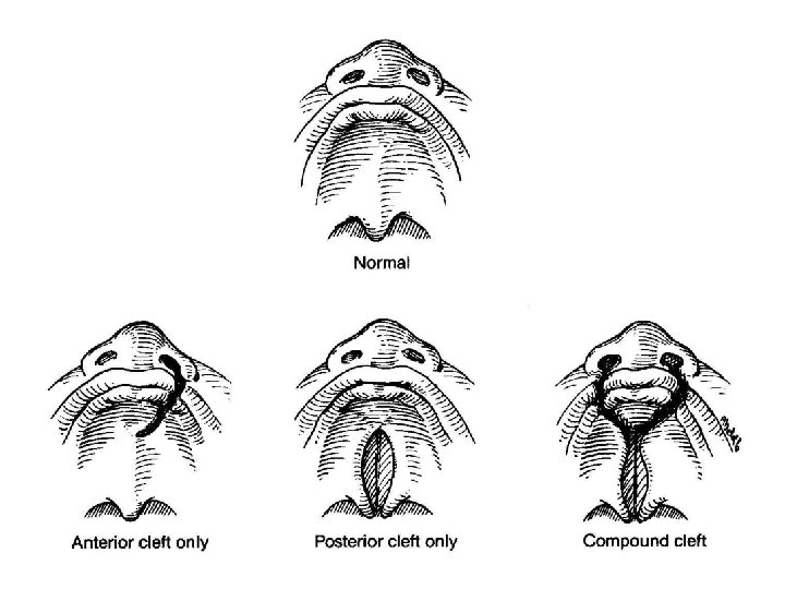 Пороки развития полости рта n Расщелина верхней губы (заячья губа) • • Полная/неполная Односторонняя/ двусторонняя