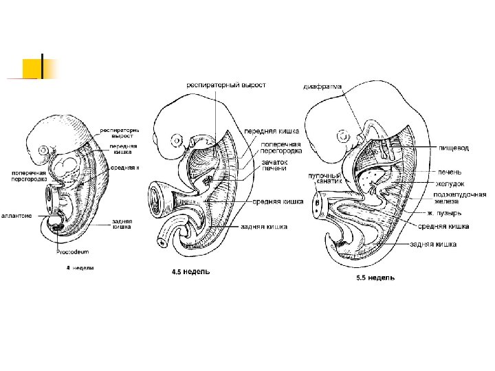 Развитие желудка n n Задняя стенка растет быстрее и сильнее ( большая кривизна) Желудок поворачивается вокруг продольной оси слева направо на 90 (левая стенка становится передней, правая задней) n Пилорическая часть желудка поднимается вверх и вправо