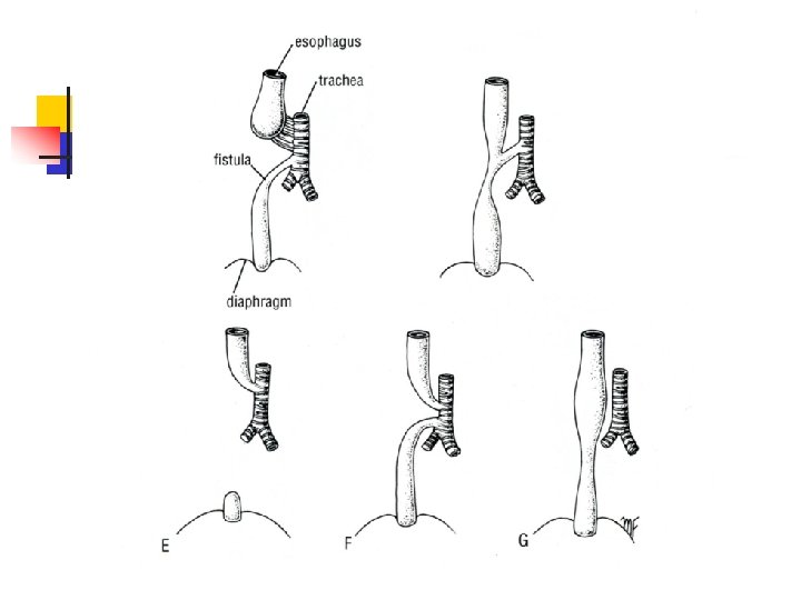 Пороки развития пищевода и трахеи n n Пищеводно-трахеальные свищи Аплазия (недоразвитие) пищевода Атрезия (отсутствие просвета) пищевода Стеноз (сужение) пищевода