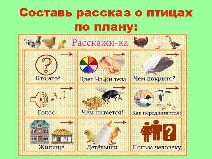 Составь рассказ о птицах по плану:
