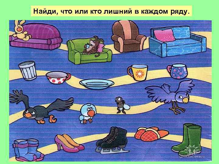 Найди, что или кто лишний в каждом ряду.