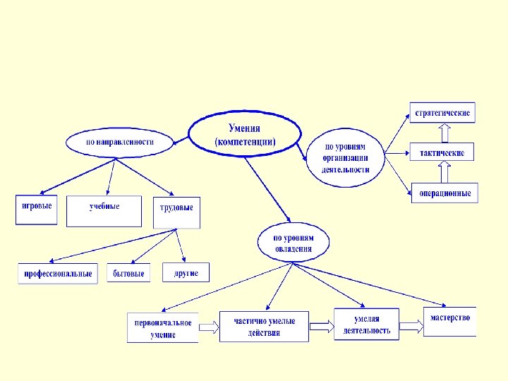 В современных условиях содержание образования, начиная с общеобразовательной школы и далее, проектируется только в терминах «знать» и «уметь» . Приоритет отдан знаниям. Умения (компетенции) представляются куда скромнее. Навыками занимается только начальная школа – чтение, письмо, счет – а также отдельные навыки развиваются в процессе трудового обучения (образовательная область «технология» ). Отражается также в современном построении образования художественное воспитание в соответствующих школьных предметах и физическое воспитание – курс «физическая культура» . Вот и все. А где остальные аспекты воспитания? Где развитие?