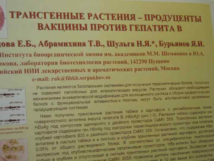Трансгенные растения • Устойчивость к гербицидам достигается путем введения в геном растения генов, которые кодируют ферменты деградации некоторых гербицидов – получены соя, устойчивая к глифосату (коммерческое название Roundup – компания “Asgrow” США), кукуруза, хлопок, сахарная свекла, рапс, устойчивые к Roundup (компания Monsanto) • Проблема устойчивости к насекомым, в частности, к колорадскому жуку, решается введением в геном растения гена, кодирующего белок – энтомотоксин, который поражает личинки колорадского жука. Компания Monsanto производит картофель «Ньюлиф» , хлопок «Болгард» , которые не повреждаются колорадским жуком