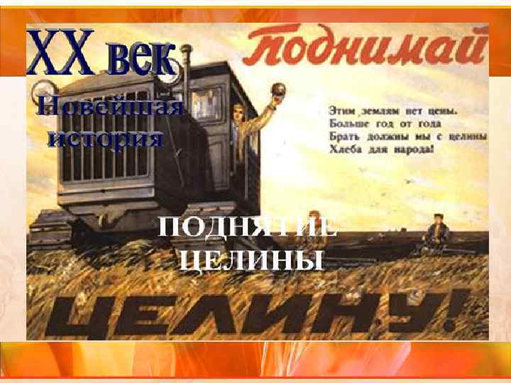 • 1946 -1950 гг. поднятие сельского хозяйства • 1954 г. – начало освоение целинных и залежных земель. • Освоение целины – комплекс мероприятий по ликвидации отставания сельского хозяйства и увеличению производства зерна в СССР в 154 -1960 гг. путем введения в оборот обширных земельных ресурсов в Казахстане, Поволжье, Урал, Сибири, Дальнем Востоке.