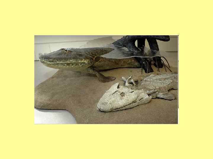 • Кистеперые рыбы (латимерии или целаканты) жили в период обмеления морей и переходили к наземному существованию – у них преобразовался дыхательный аппарат (двоякодышащие рыбы), их плавники приспособились к переползанию.