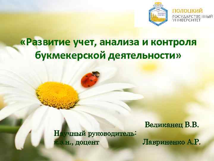 «Развитие учет, анализа и контроля букмекерской деятельности» Великанец В. В. Научный руководитель: к. э. н. , доцент Лавриненко А. Р.