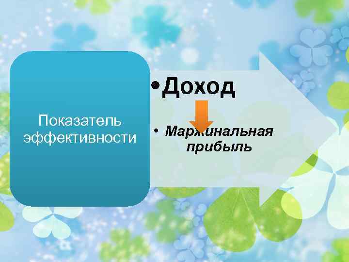 • Доход Показатель эффективности • Маржинальная прибыль