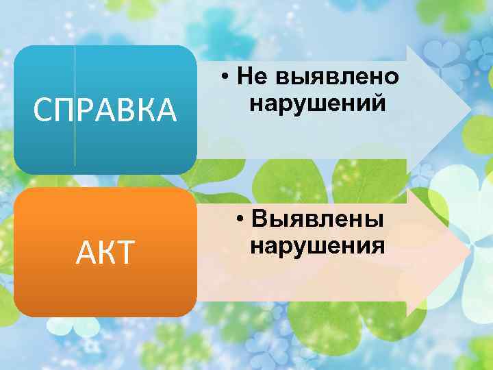 СПРАВКА АКТ • Не выявлено нарушений • Выявлены нарушения