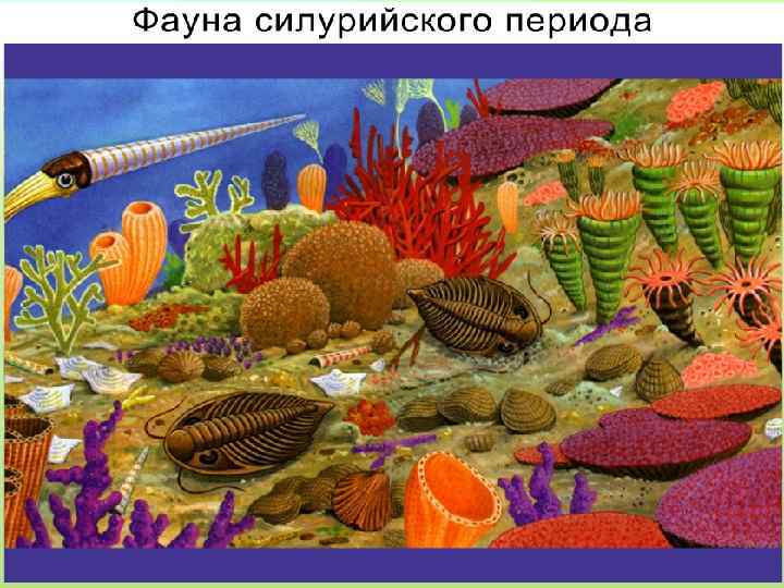 Силурийский период палеозойской эры ознаменовался выходом растений на сушу. В результате горообразовательных процессов образуются участки суши, частично затопленные водой, что создает предпосылки для возникновения первых наземных растений – псилофитов, они ещё не имели корней и листьев.