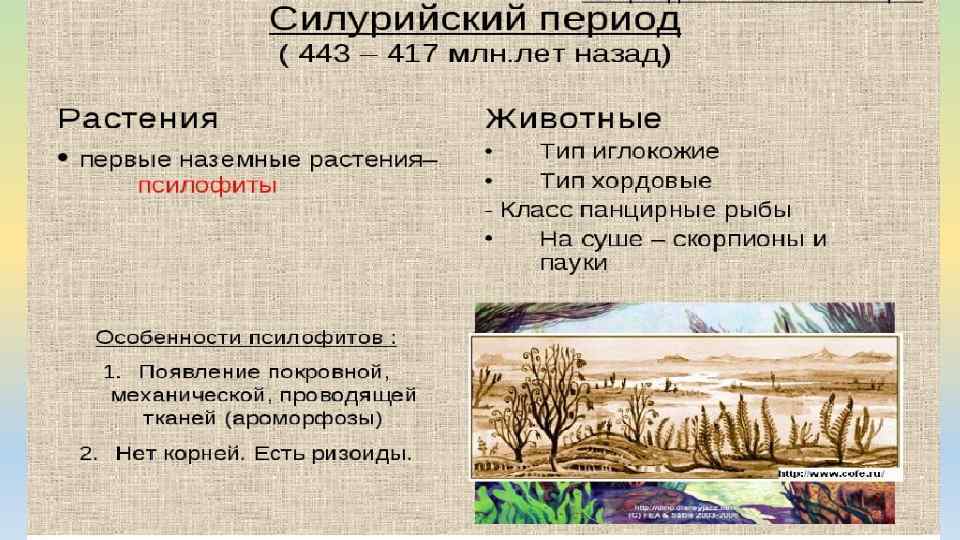 Обитатели палеозоя • Псилофиты – первые наземные растения • Древовидные папоротники • Хвойные • Плауновидные