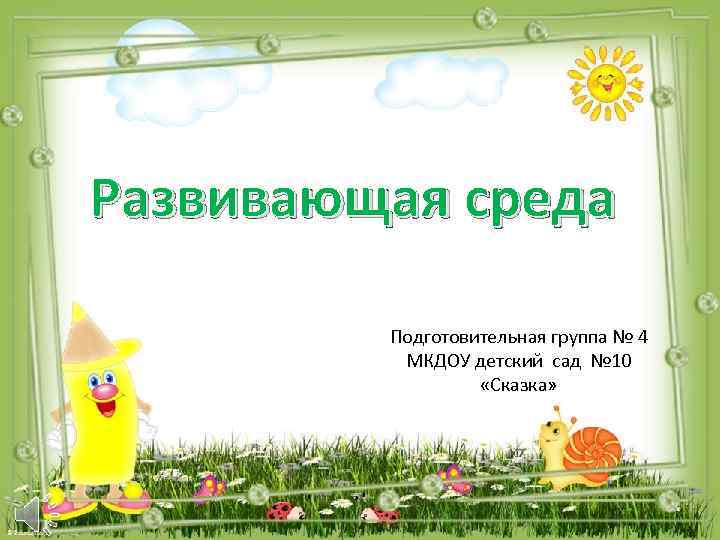 Развивающая среда Подготовительная группа № 4 МКДОУ детский сад № 10 «Сказка»