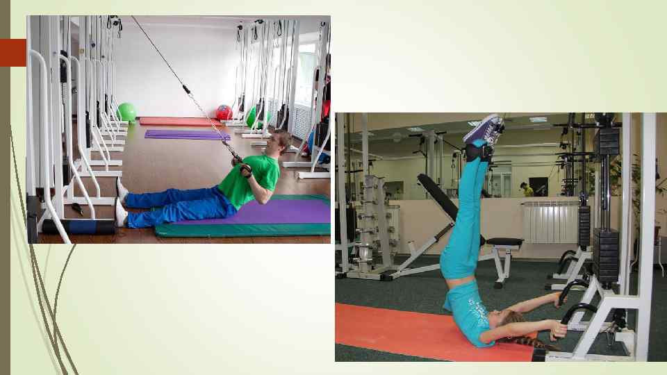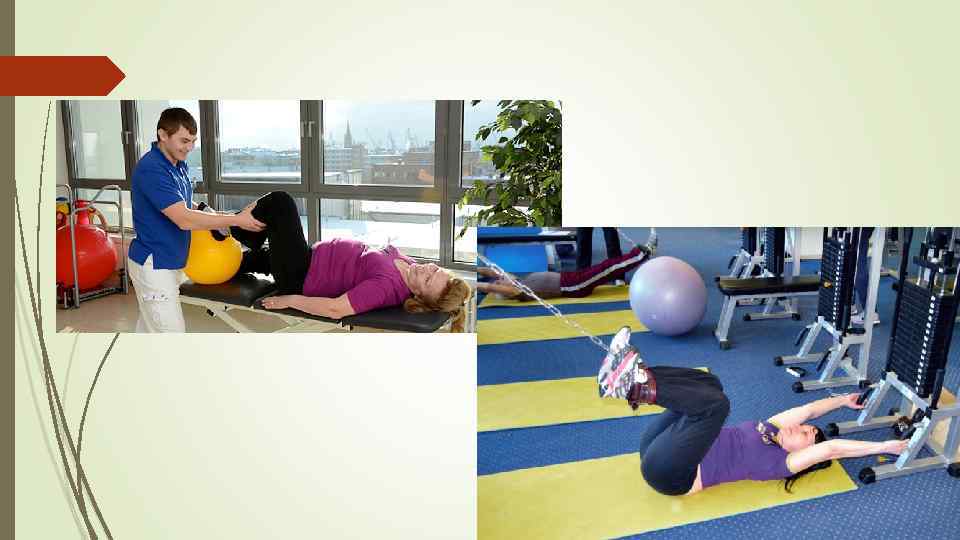 III период 1, 5 -2 месяца после травмы Физическая нагрузка увеличивается, улучшается координация движений и подвижность позвоночника Назначаются У. с сопротивлением, малым отягощением, изометрические напряжения, с большой продолжительностью И. П. - лежа на спине, лежа, упор на колени
